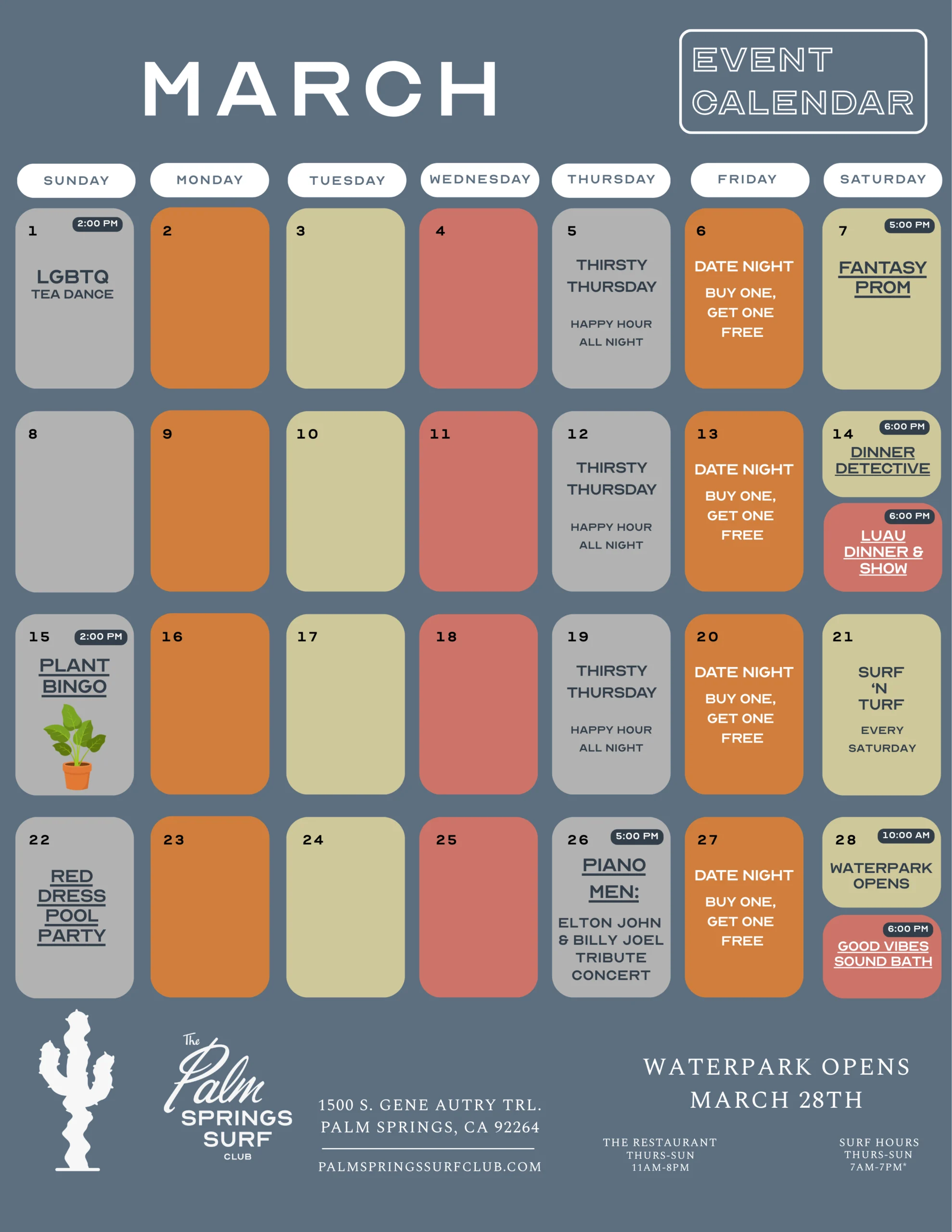 - March 8, 2026 – Palm Springs Surf Club
